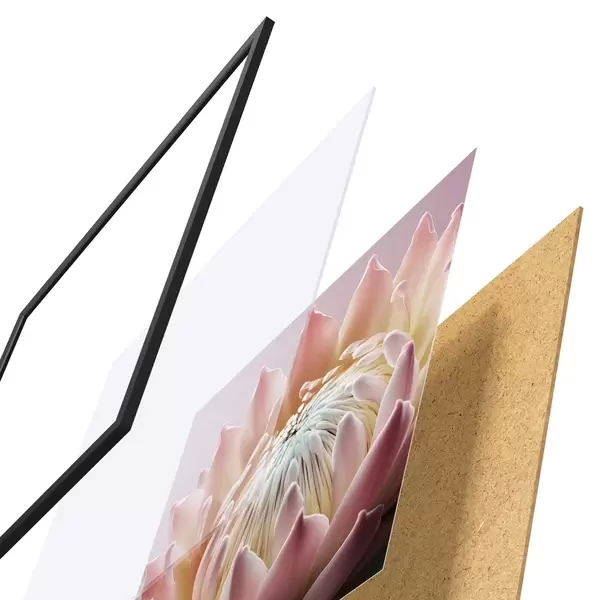 Das Poster besteht aus einem Rahmen, Plexiglas, einem gedruckten Bild und einer Rückwand aus Spanplatten. Dank der Halterungen auf der Rückseite kann das Poster sofort an die Wand gehängt werden.