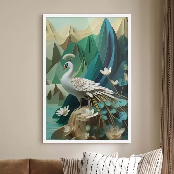 Poster Pfau auf grünem Hintergrund f47901