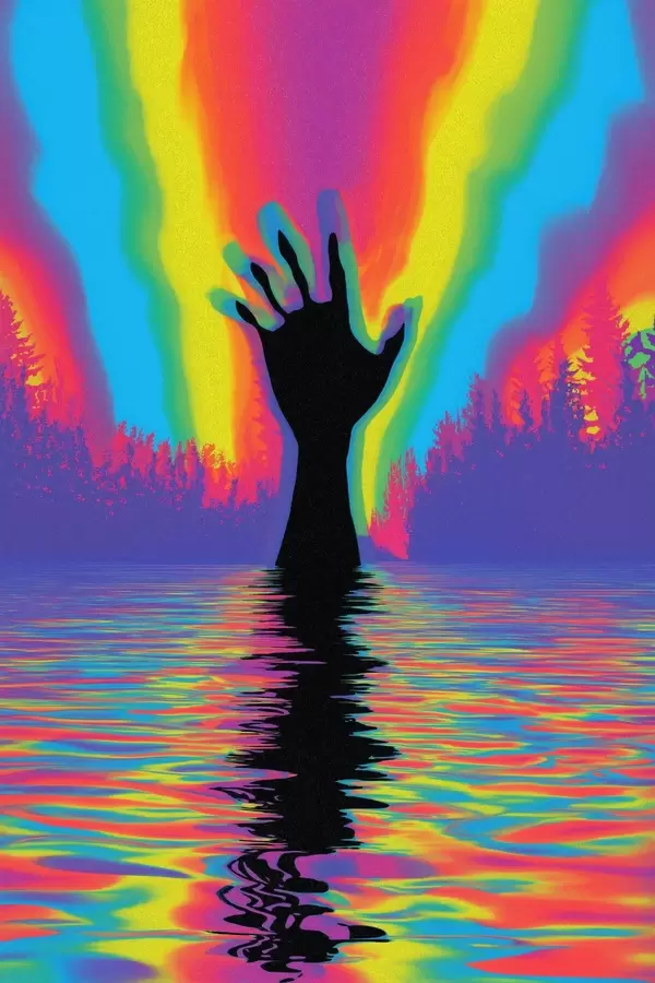 Poster Silhouette einer Hand über Wasser f47903