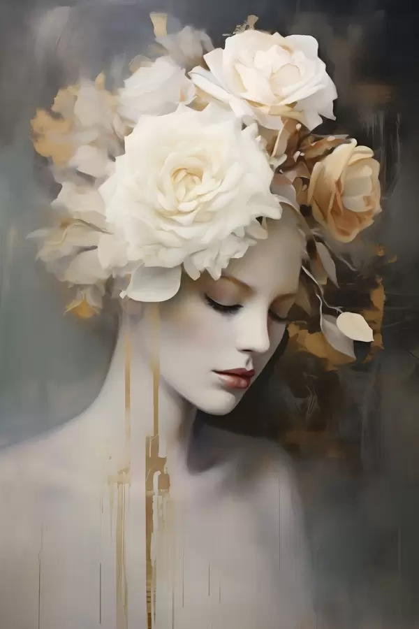 Poster Weibliches Porträt mit weißen Blumen Nr f47904