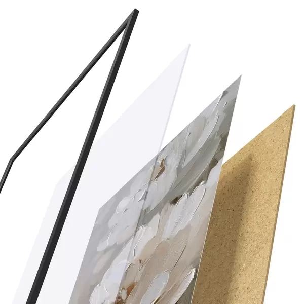 Das Poster besteht aus einem Rahmen, Plexiglas, einem gedruckten Bild und einer Rückwand aus Spanplatten. Dank der Halterungen auf der Rückseite kann das Poster sofort an die Wand gehängt werden.