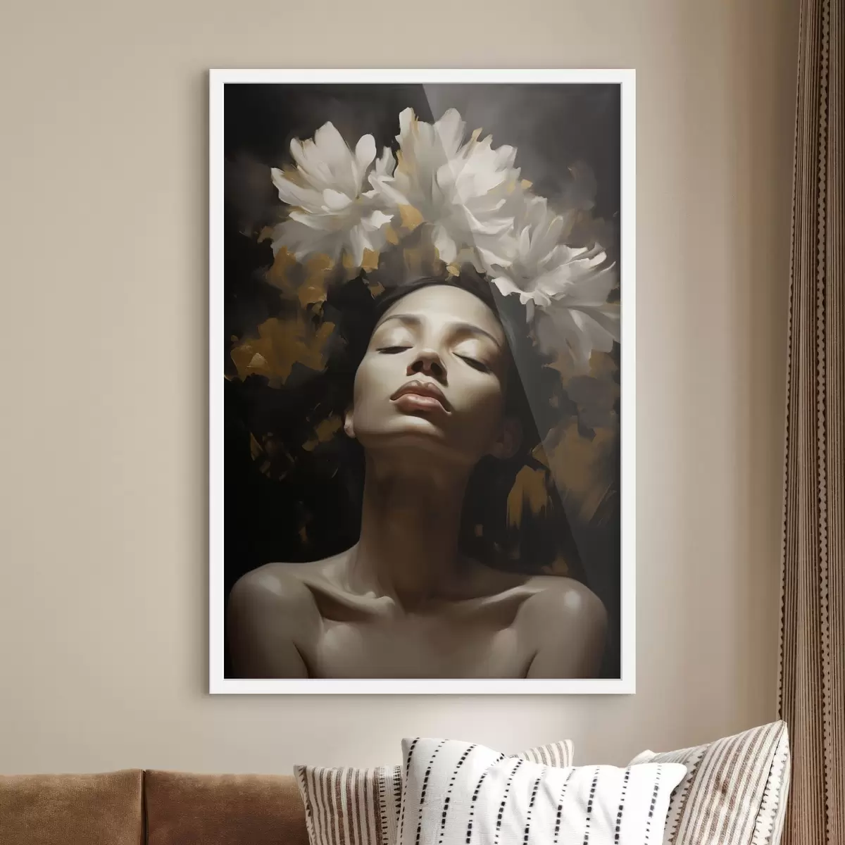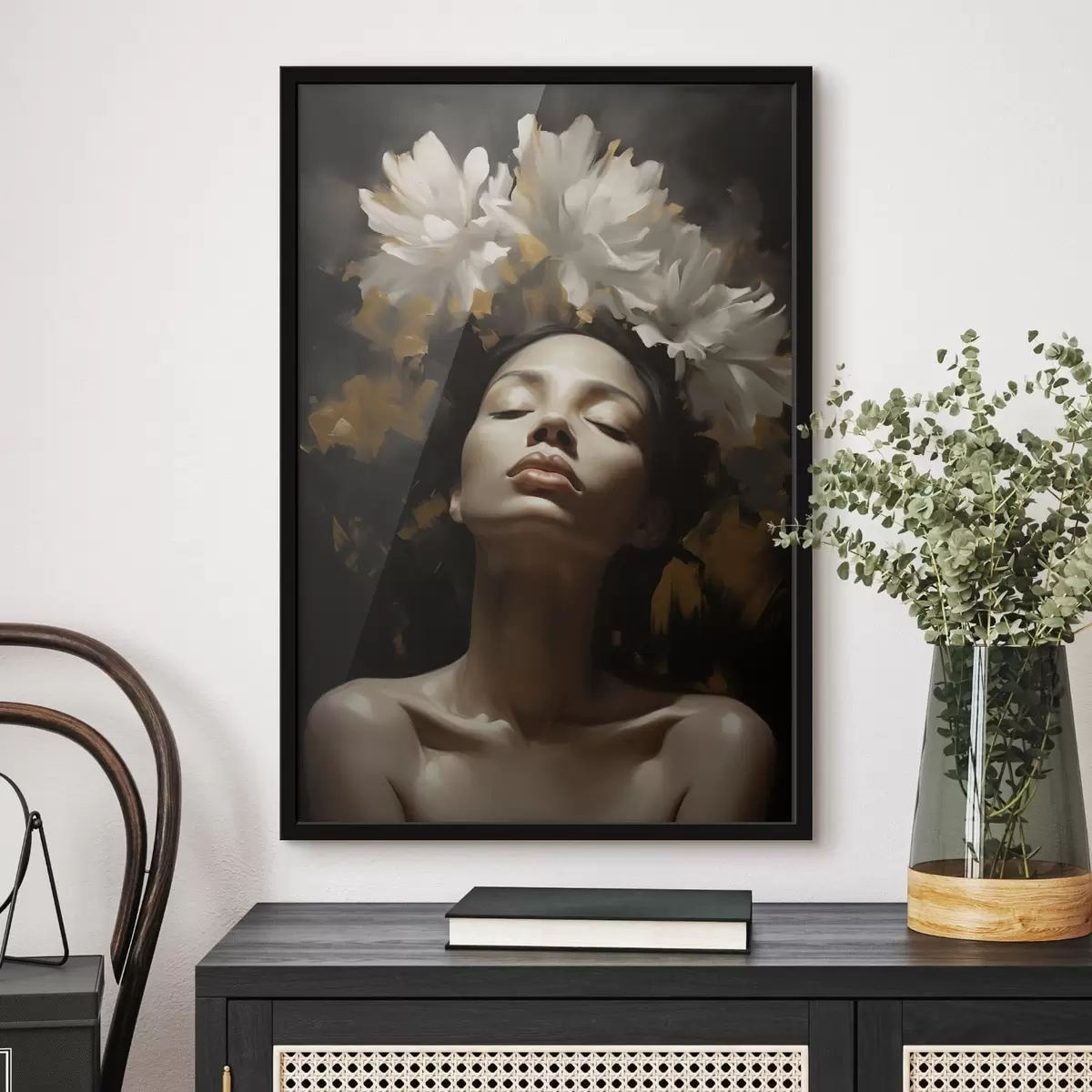 Poster Weibliches Porträt mit weißen Blumen Nr f47918