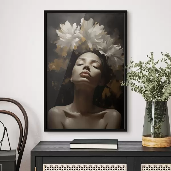 Poster Weibliches Porträt mit weißen Blumen f47918