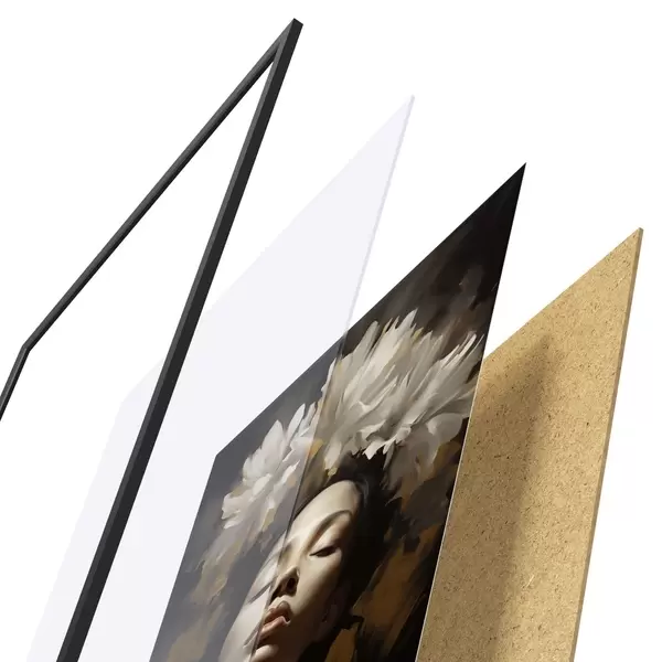 Das Poster besteht aus einem Rahmen, Plexiglas, einem gedruckten Bild und einer Rückwand aus Spanplatten. Dank der Halterungen auf der Rückseite kann das Poster sofort an die Wand gehängt werden.