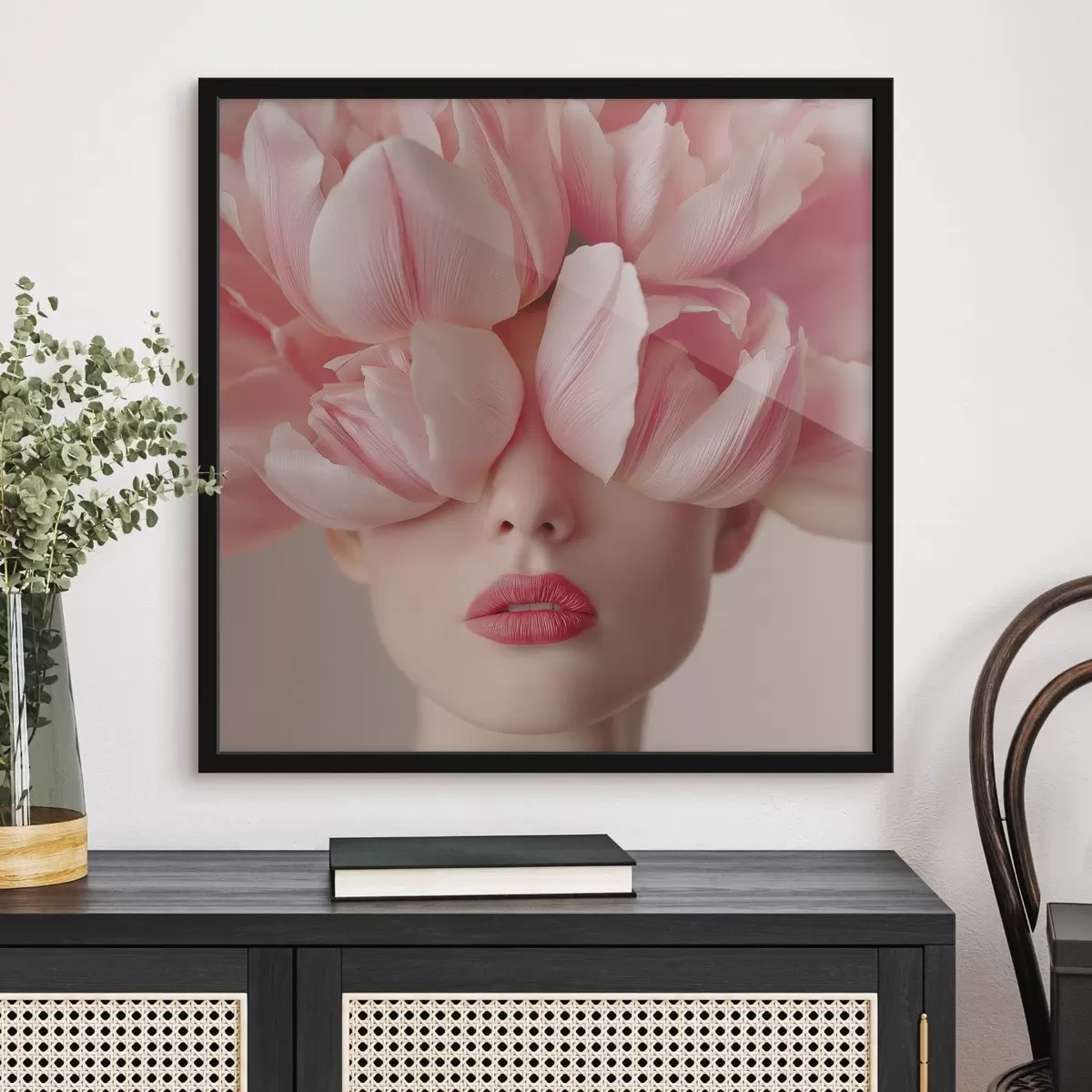 Poster Frauenporträt mit rosa Blütenblättern Nr f47920