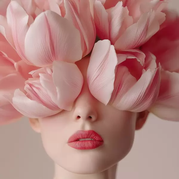 Poster Frauenporträt mit rosa Blütenblättern Nr f47920