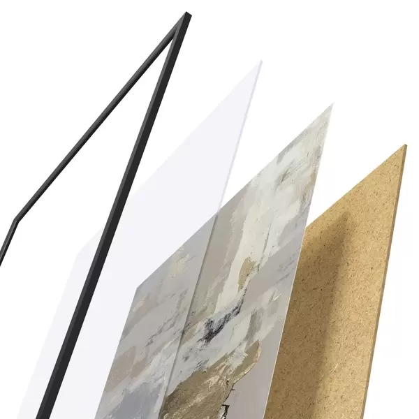 Das Poster besteht aus einem Rahmen, Plexiglas, einem gedruckten Bild und einer Rückwand aus Spanplatten. Dank der Halterungen auf der Rückseite kann das Poster sofort an die Wand gehängt werden.
