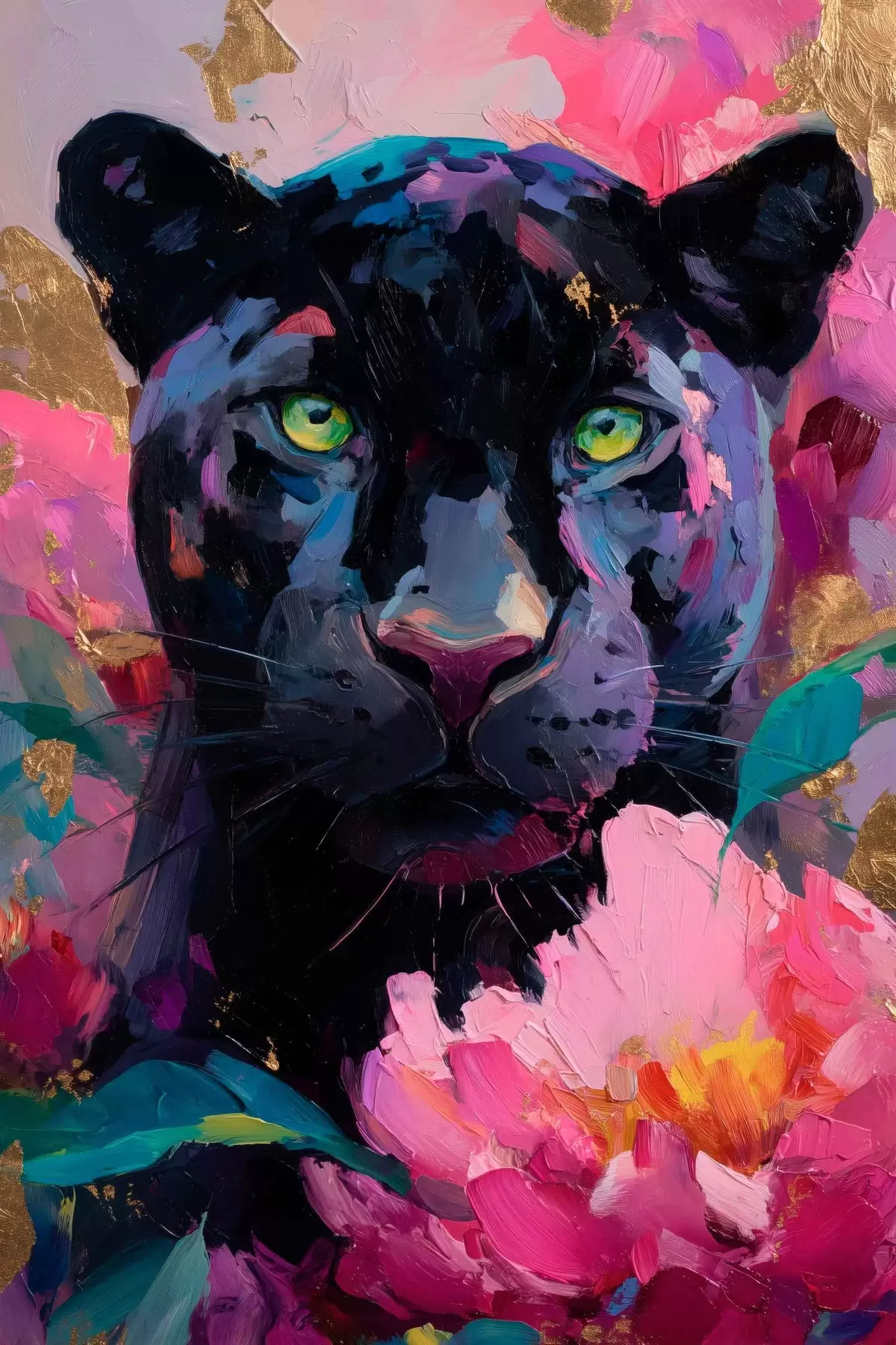 Poster Schwarzer Panther zwischen Pfingstrosen Nr f47935