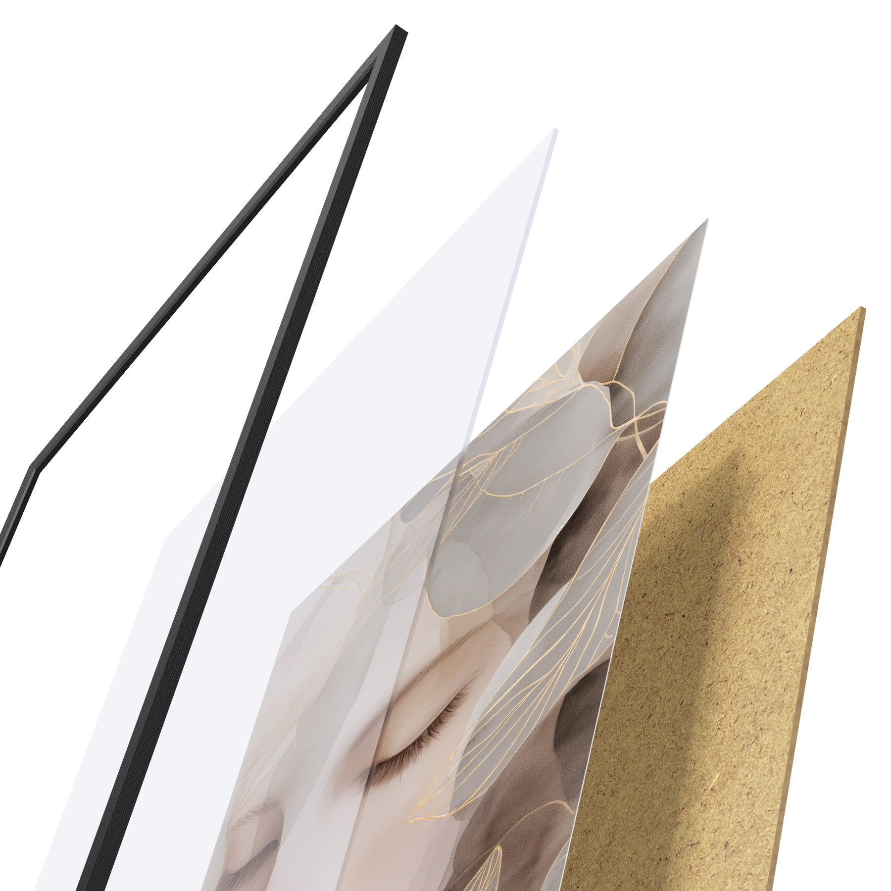 Das Poster besteht aus einem Rahmen, Plexiglas, einem gedruckten Bild und einer Rückwand aus Spanplatten. Dank der Halterungen auf der Rückseite kann das Poster sofort an die Wand gehängt werden.