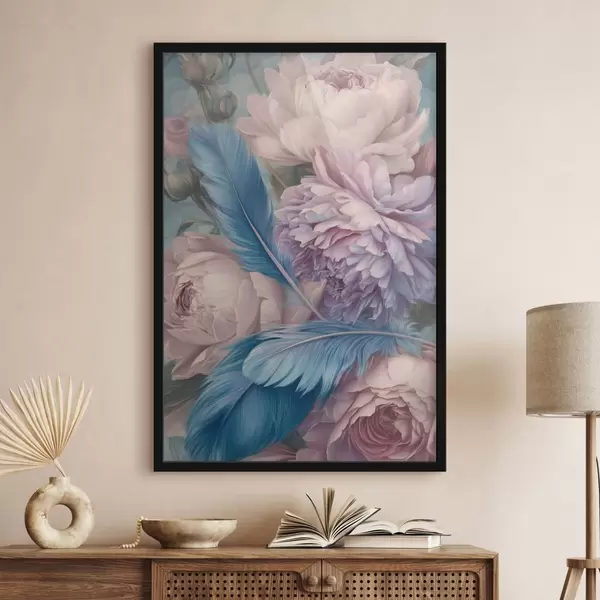 Poster Federn zwischen Pfingstrosen Nr f47939