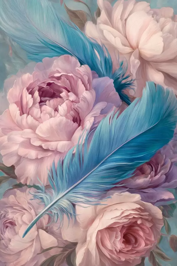 Poster Federn zwischen Pfingstrosen Nr f47940