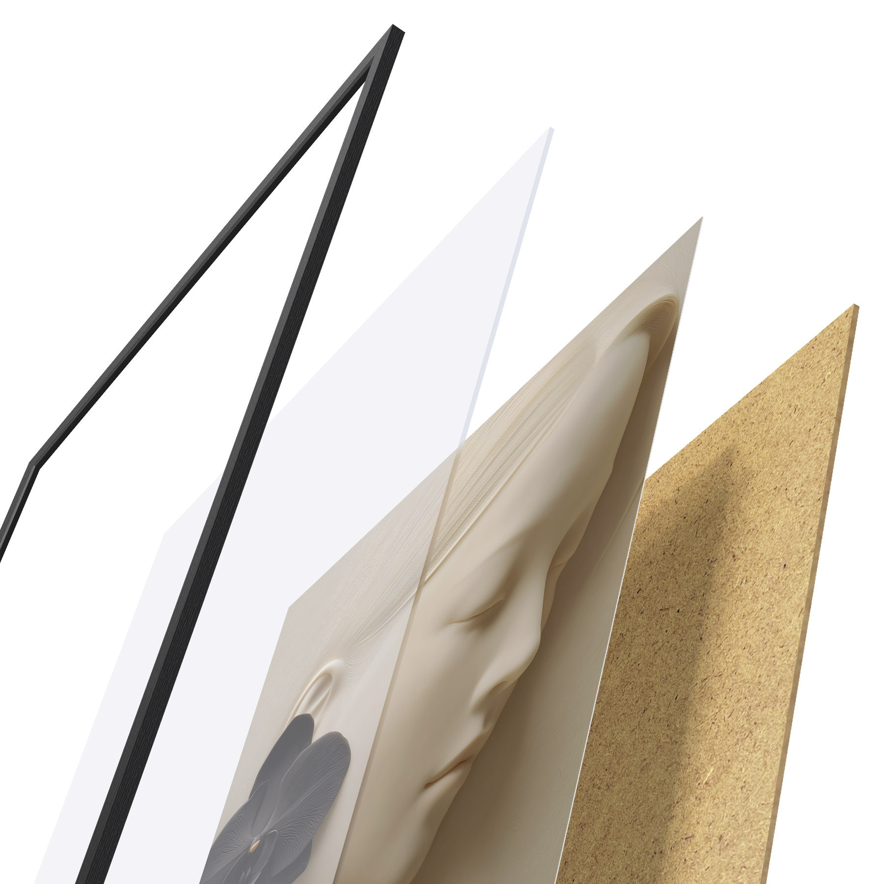 Das Poster besteht aus einem Rahmen, Plexiglas, einem gedruckten Bild und einer Rückwand aus Spanplatten. Dank der Halterungen auf der Rückseite kann das Poster sofort an die Wand gehängt werden.