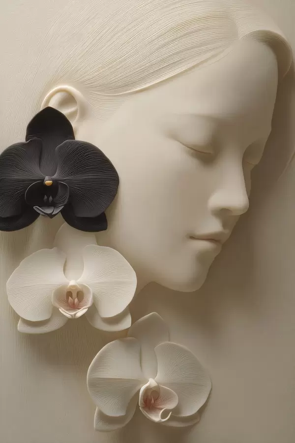 Poster Mädchen mit Orchideen im Flachreliefstil f47941