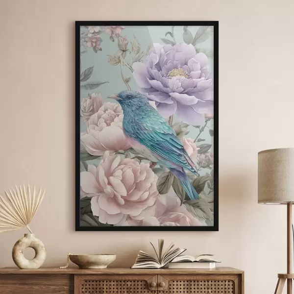 Poster Singende Vögel in Rosen f47944