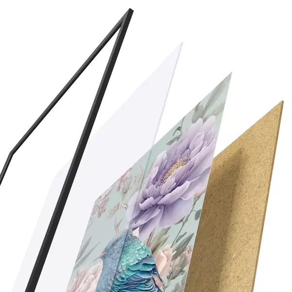 Das Poster besteht aus einem Rahmen, Plexiglas, einem gedruckten Bild und einer Rückwand aus Spanplatten. Dank der Halterungen auf der Rückseite kann das Poster sofort an die Wand gehängt werden.