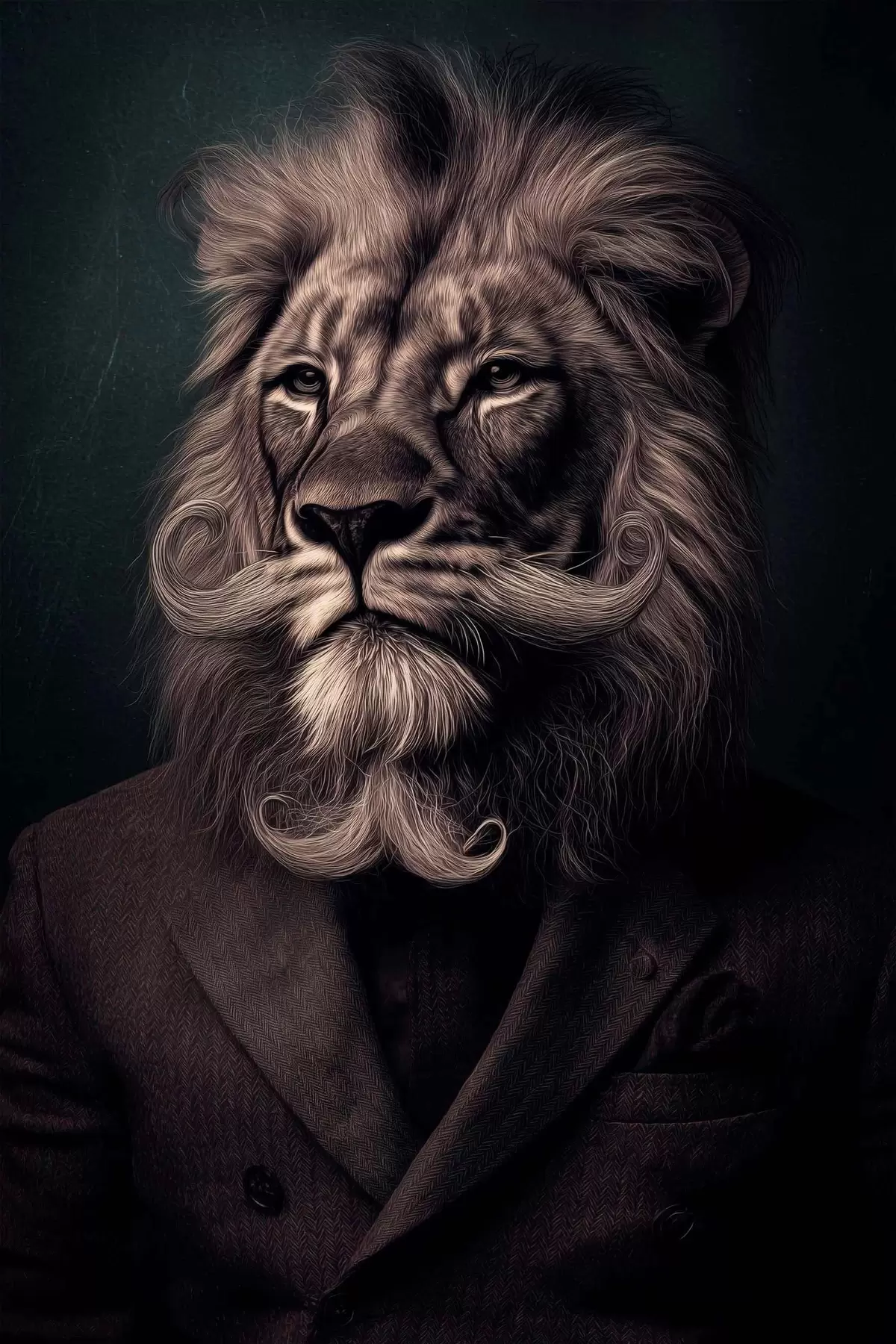 Poster Löwe mit einem Bart im Friseursalon-Stil f47947