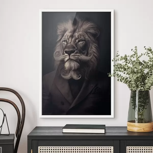 Poster Löwe mit einem Bart im Friseursalon-Stil Nr f47947