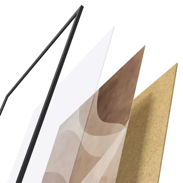 Das Poster besteht aus einem Rahmen, Plexiglas, einem gedruckten Bild und einer Rückwand aus Spanplatten. Dank der Halterungen auf der Rückseite kann das Poster sofort an die Wand gehängt werden.
