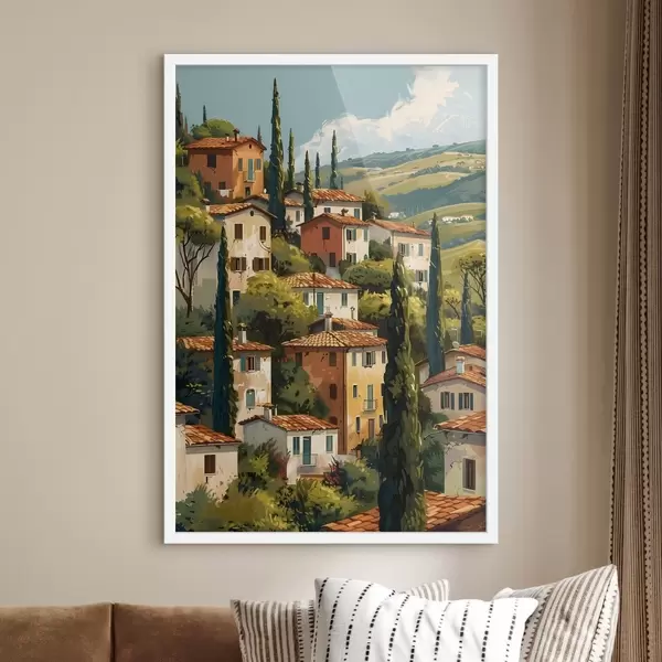 Poster Mediterranes Bergdorf, übereinanderliegende Häuser in warmen Farbtönen mit Terrakottadächern Nr f47950