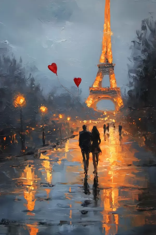 Poster Romantischer Spaziergang in Paris im Stil eines Ölgemäldes Nr f47952