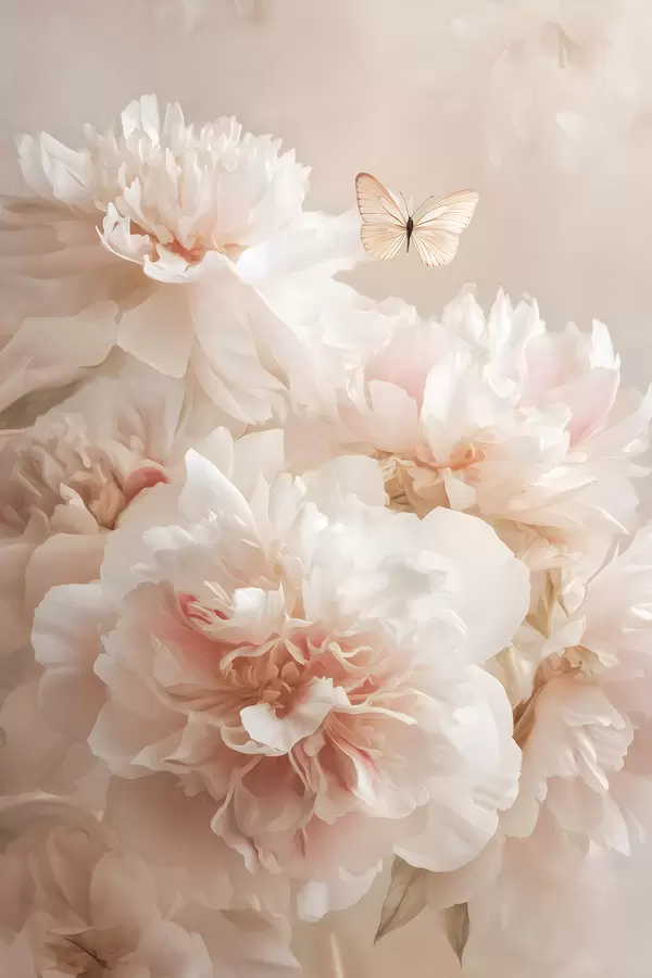 Poster üppige rosa Pfingstrosen mit einem Schmetterling f47954
