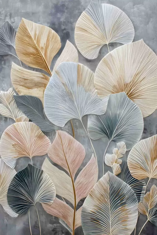 Poster Buntes dekoratives Blattwerk mit ausgeprägter Textur auf dunklem Hintergrund Nr f47964