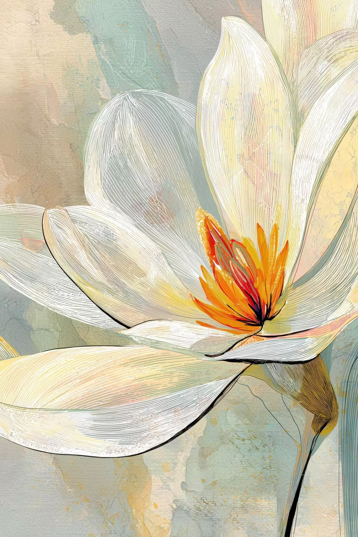 Poster Abstrakte Magnolien in Pastelltönen mit Schwerpunkt auf linearen Grafiken Nr f47970