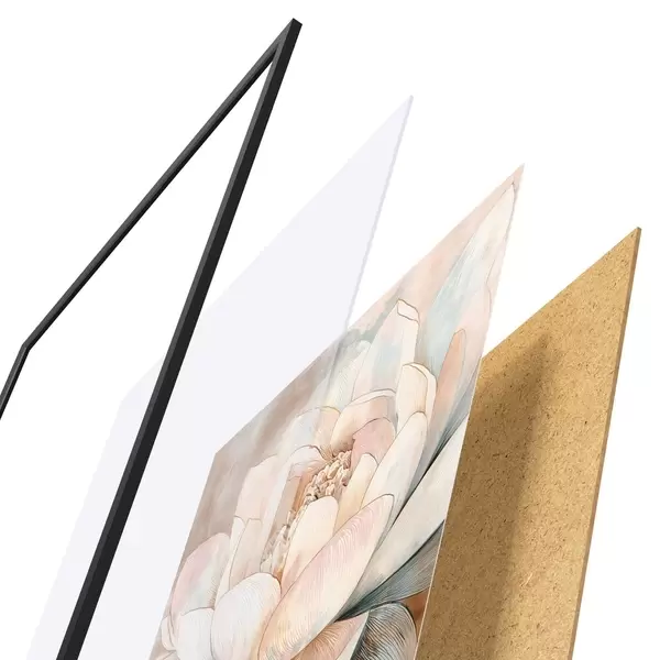 Das Poster besteht aus einem Rahmen, Plexiglas, einem gedruckten Bild und einer Rückwand aus Spanplatten. Dank der Halterungen auf der Rückseite kann das Poster sofort an die Wand gehängt werden.