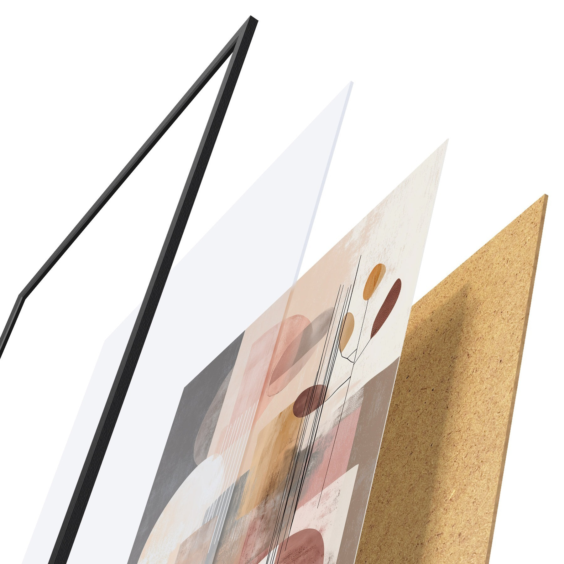 Das Poster besteht aus einem Rahmen, Plexiglas, einem gedruckten Bild und einer Rückwand aus Spanplatten. Dank der Halterungen auf der Rückseite kann das Poster sofort an die Wand gehängt werden.