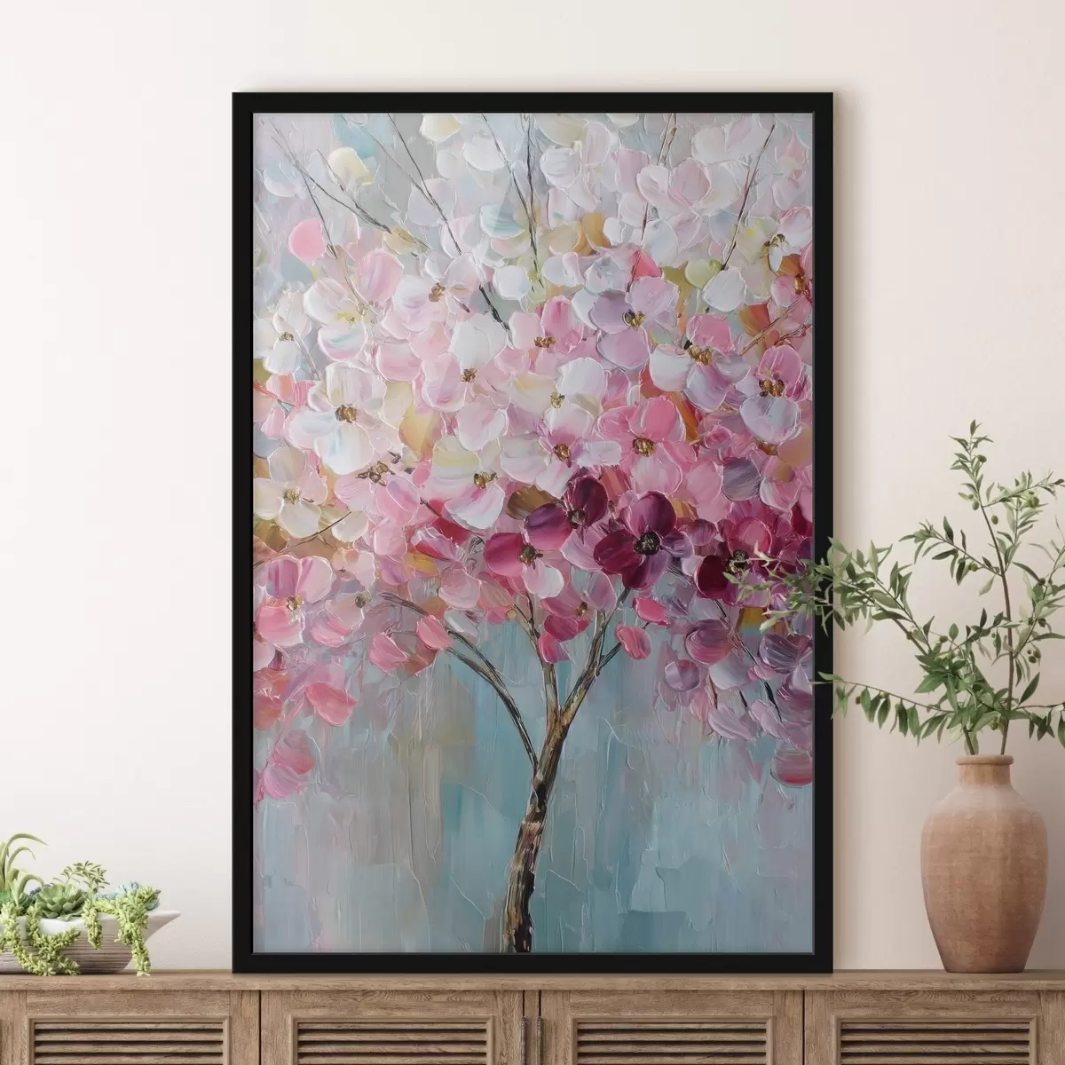 Poster Zarte rosa Blüten vor einem klaren Himmel Nr f47988