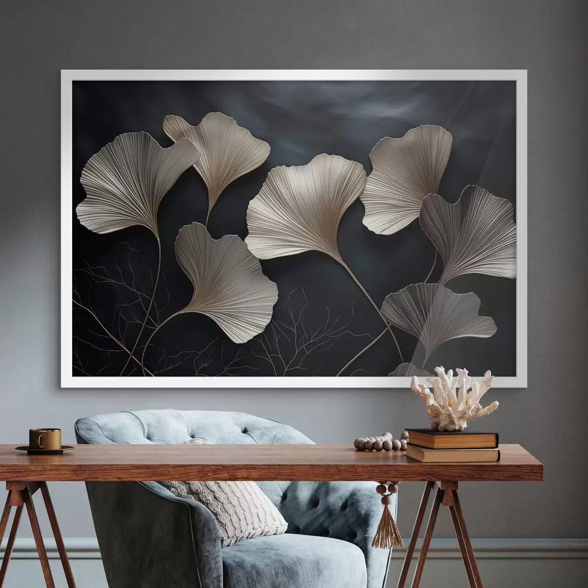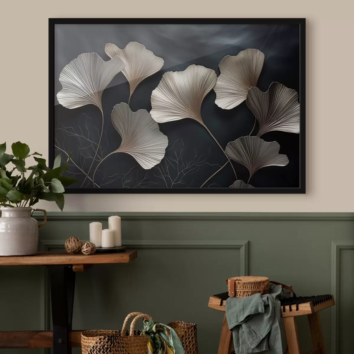 Poster Ginkgoblätter auf dunklem Hintergrund f48008