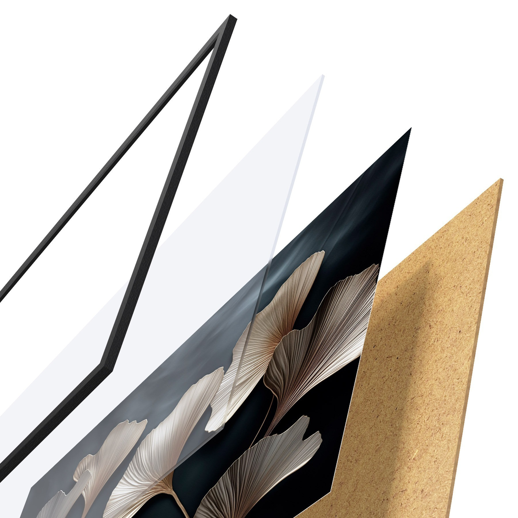 Das Poster besteht aus einem Rahmen, Plexiglas, einem gedruckten Bild und einer Rückwand aus Spanplatten. Dank der Halterungen auf der Rückseite kann das Poster sofort an die Wand gehängt werden.