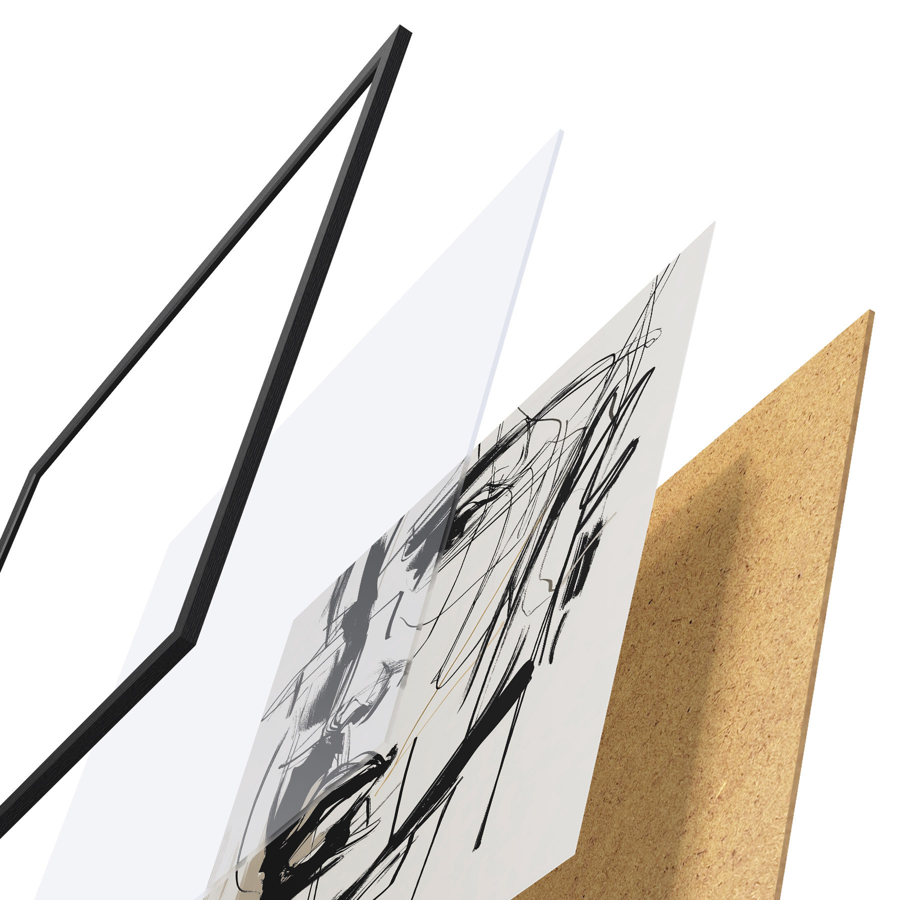 Das Poster besteht aus einem Rahmen, Plexiglas, einem gedruckten Bild und einer Rückwand aus Spanplatten. Dank der Halterungen auf der Rückseite kann das Poster sofort an die Wand gehängt werden.