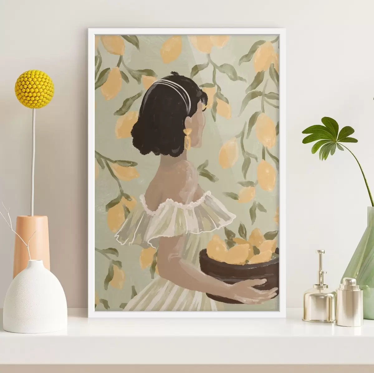Poster Frau hält eine Schüssel mit Zitronen an den Zweigen Nr f48023
