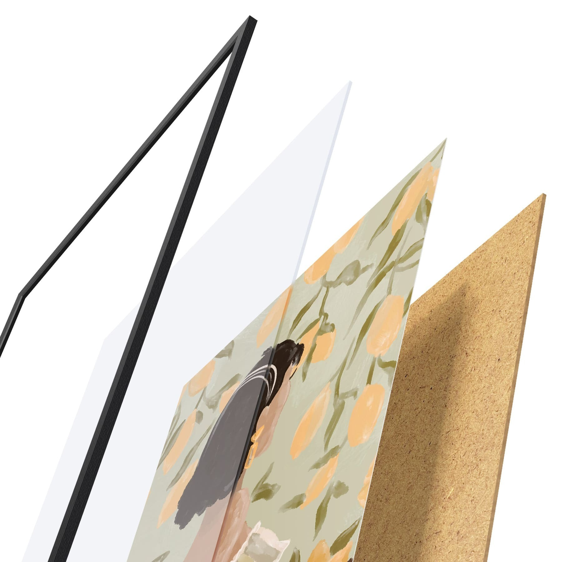 Das Poster besteht aus einem Rahmen, Plexiglas, einem gedruckten Bild und einer Rückwand aus Spanplatten. Dank der Halterungen auf der Rückseite kann das Poster sofort an die Wand gehängt werden.