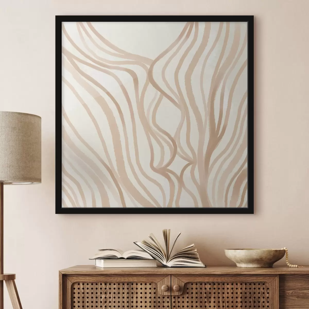 Poster Abstrakte Wellenlinien in Beigetönen f48027