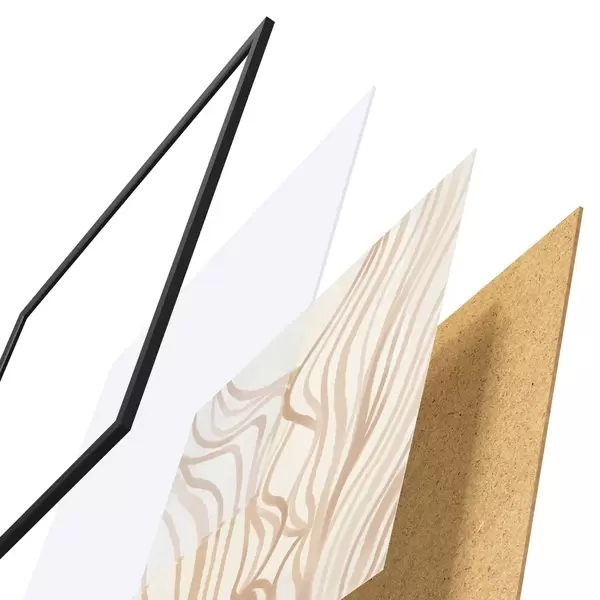 Das Poster besteht aus einem Rahmen, Plexiglas, einem gedruckten Bild und einer Rückwand aus Spanplatten. Dank der Halterungen auf der Rückseite kann das Poster sofort an die Wand gehängt werden.