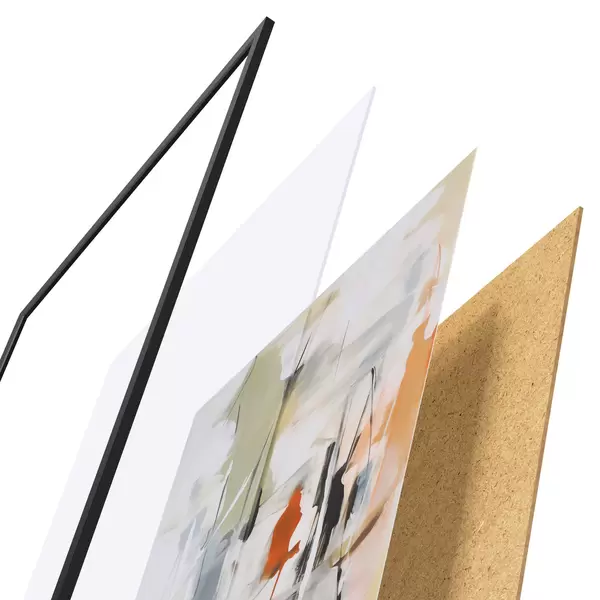 Das Poster besteht aus einem Rahmen, Plexiglas, einem gedruckten Bild und einer Rückwand aus Spanplatten. Dank der Halterungen auf der Rückseite kann das Poster sofort an die Wand gehängt werden.