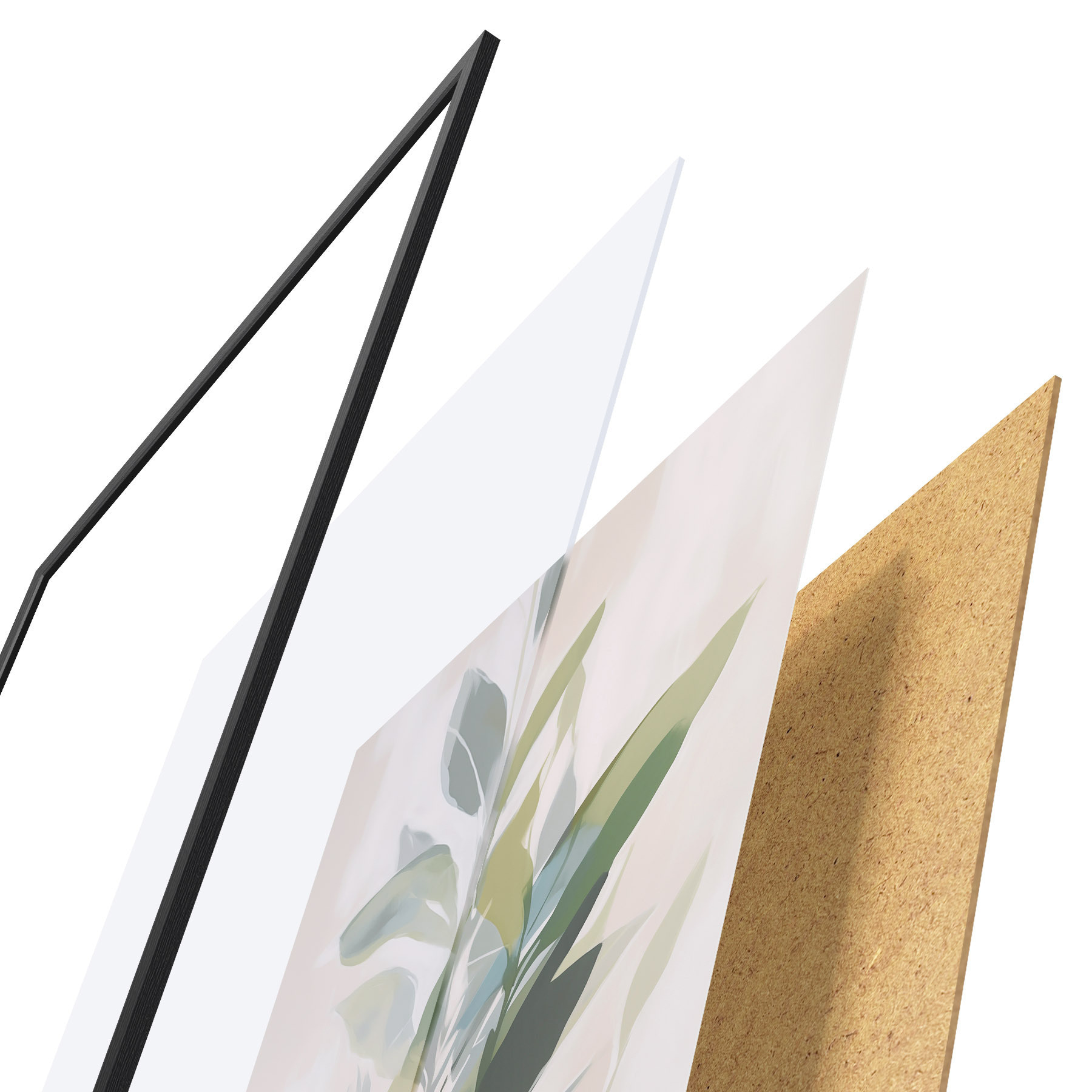 Das Poster besteht aus einem Rahmen, Plexiglas, einem gedruckten Bild und einer Rückwand aus Spanplatten. Dank der Halterungen auf der Rückseite kann das Poster sofort an die Wand gehängt werden.