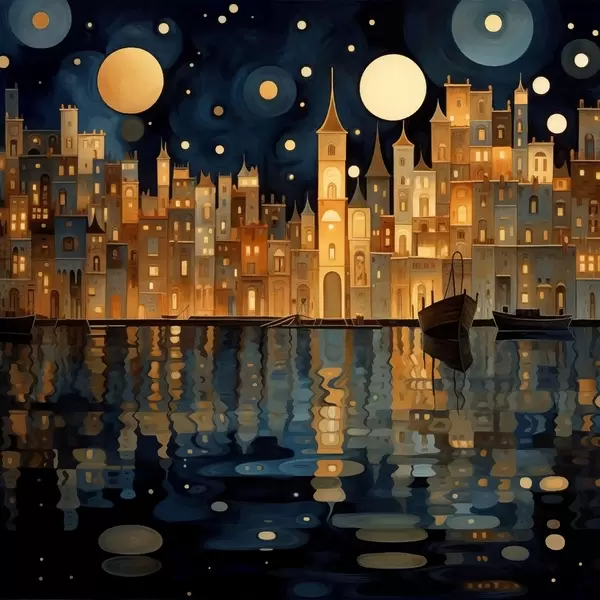 Poster Launische Nachtstadt am Wasser Nr f48063