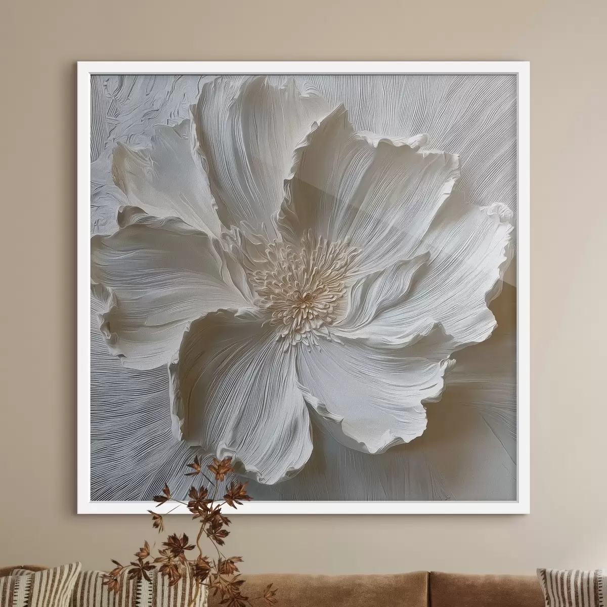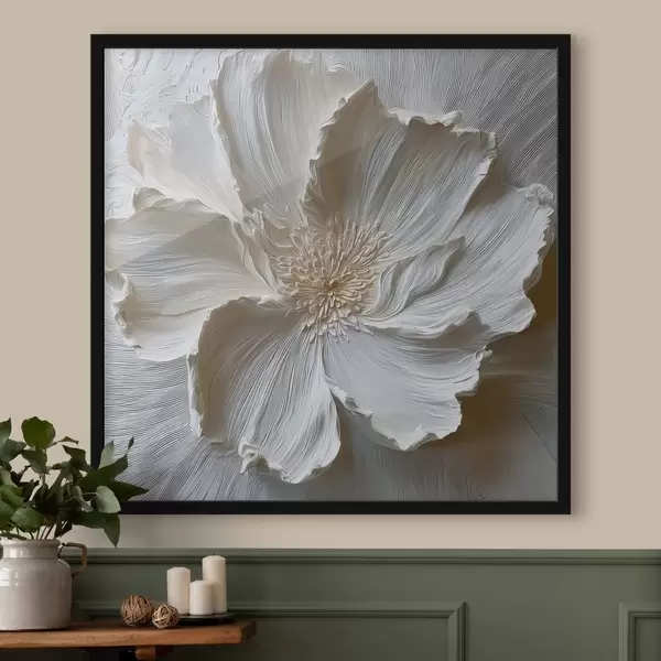 Poster Weiße Gipsrelief-Blumenskulptur Nr f48064