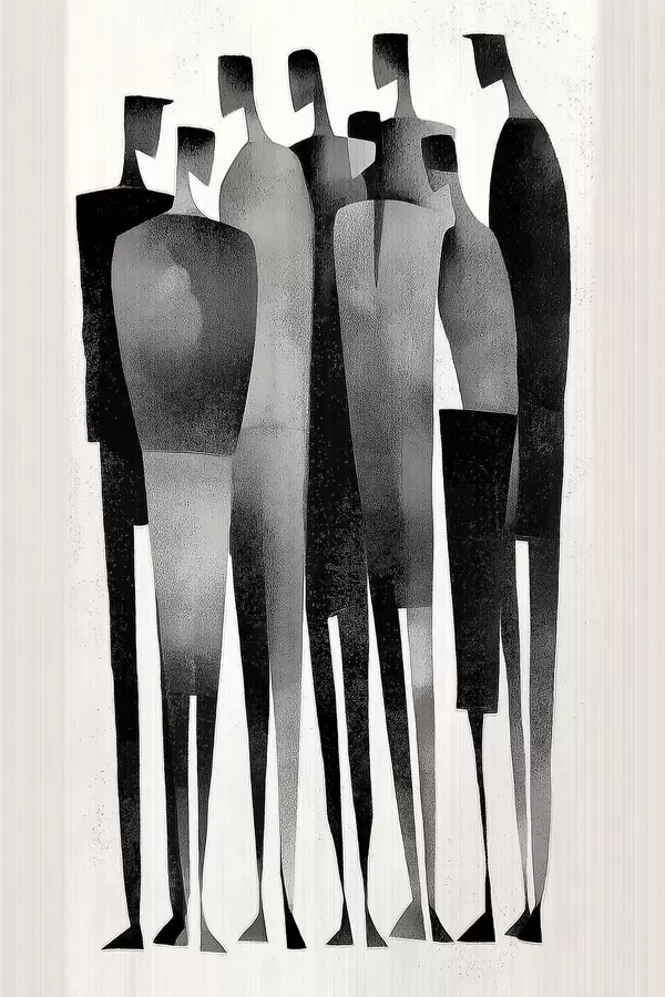 Poster minimalistische, langgestreckte menschliche Figuren, die in einer Reihe stehen Nr f48069