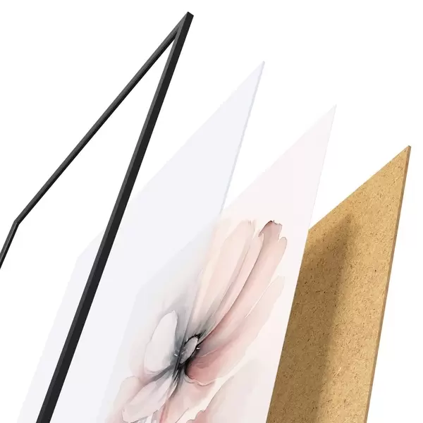 Das Poster besteht aus einem Rahmen, Plexiglas, einem gedruckten Bild und einer Rückwand aus Spanplatten. Dank der Halterungen auf der Rückseite kann das Poster sofort an die Wand gehängt werden.