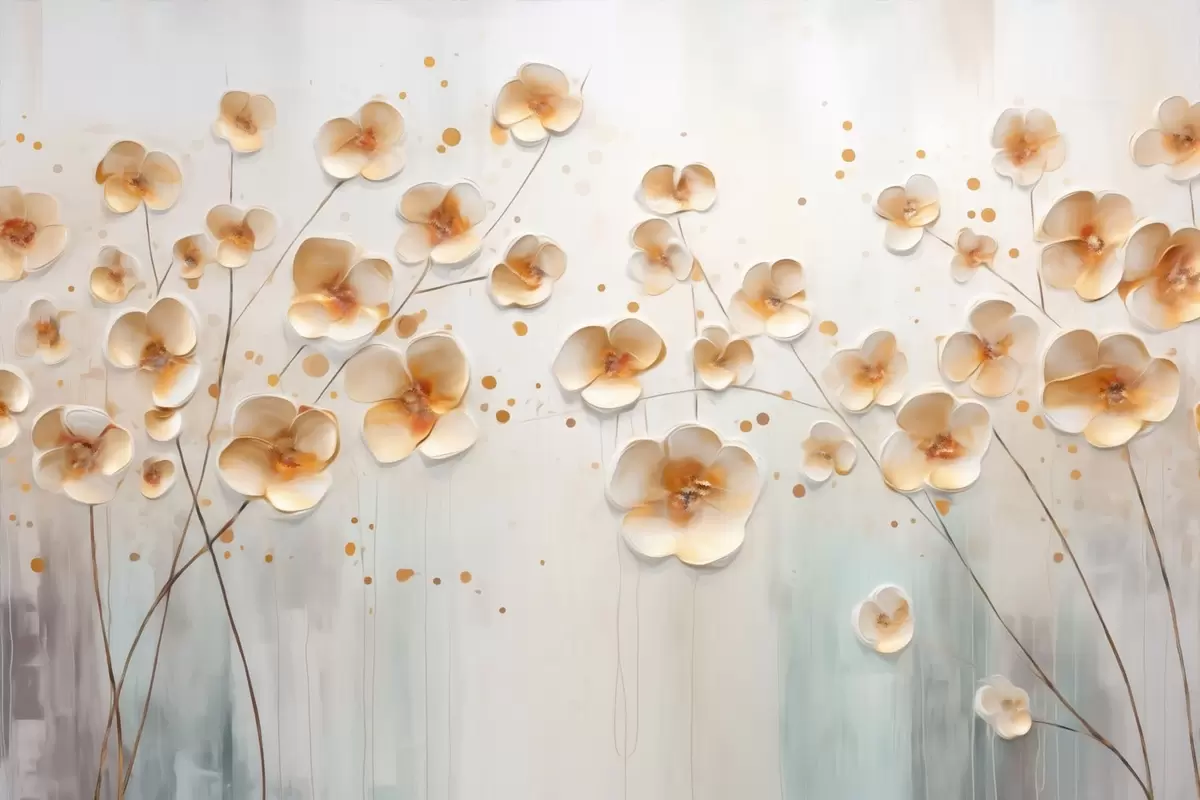 Poster Helle Blumen mit orangefarbenen Akzenten Nr f48087