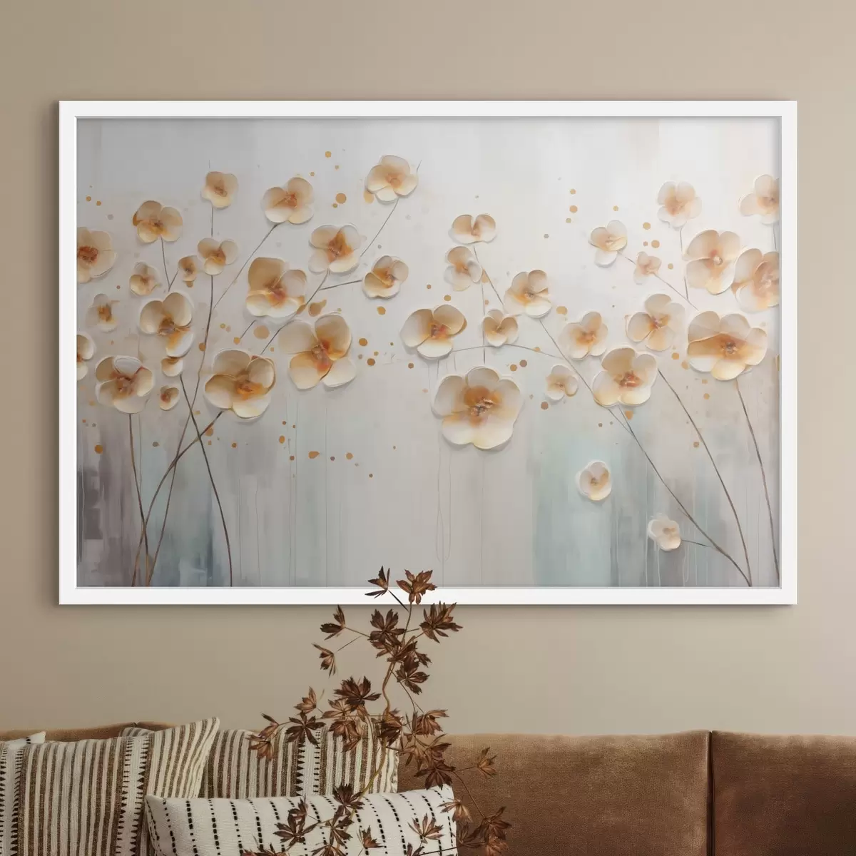 Poster Helle Blumen mit orangefarbenen Akzenten f48087