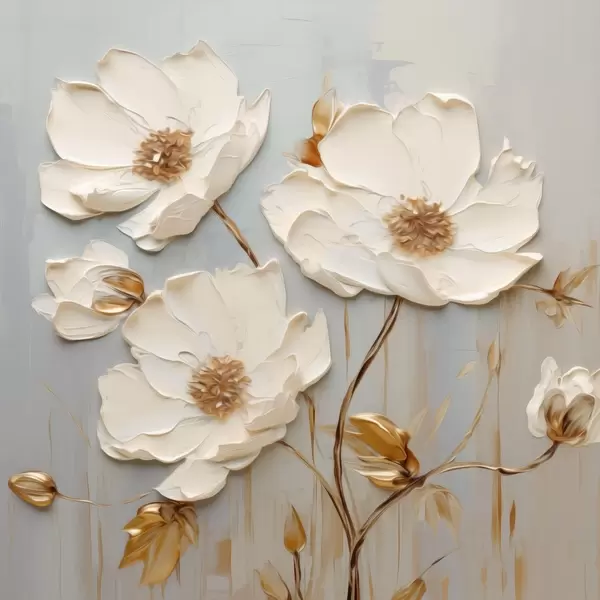 Poster Reliefartige weiße Blüten mit warmen Blättern Nr f48093