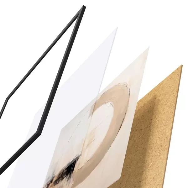 Das Poster besteht aus einem Rahmen, Plexiglas, einem gedruckten Bild und einer Rückwand aus Spanplatten. Dank der Halterungen auf der Rückseite kann das Poster sofort an die Wand gehängt werden.