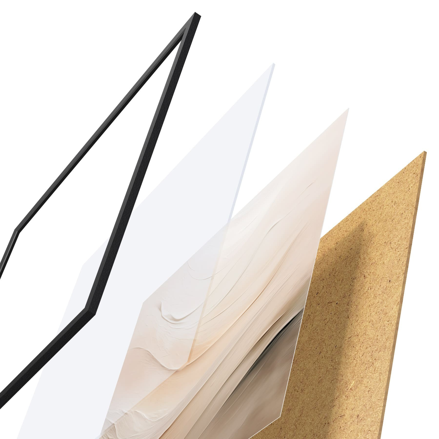 Das Poster besteht aus einem Rahmen, Plexiglas, einem gedruckten Bild und einer Rückwand aus Spanplatten. Dank der Halterungen auf der Rückseite kann das Poster sofort an die Wand gehängt werden.