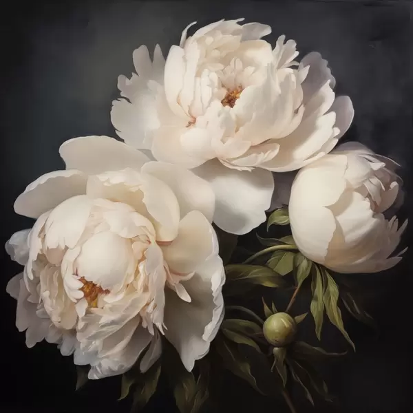 Poster Weiße Pfingstrosen auf dunklem Hintergrund Nr f48101