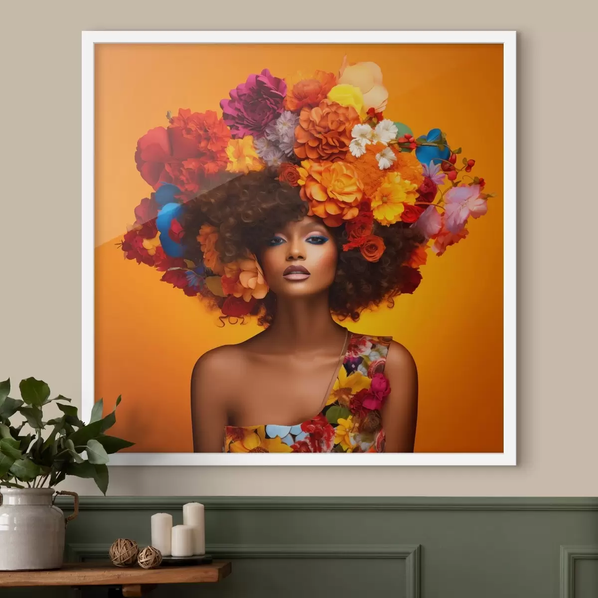 Poster Frau mit Blumenkranz auf orangefarbenem Hintergrund Nr f48102